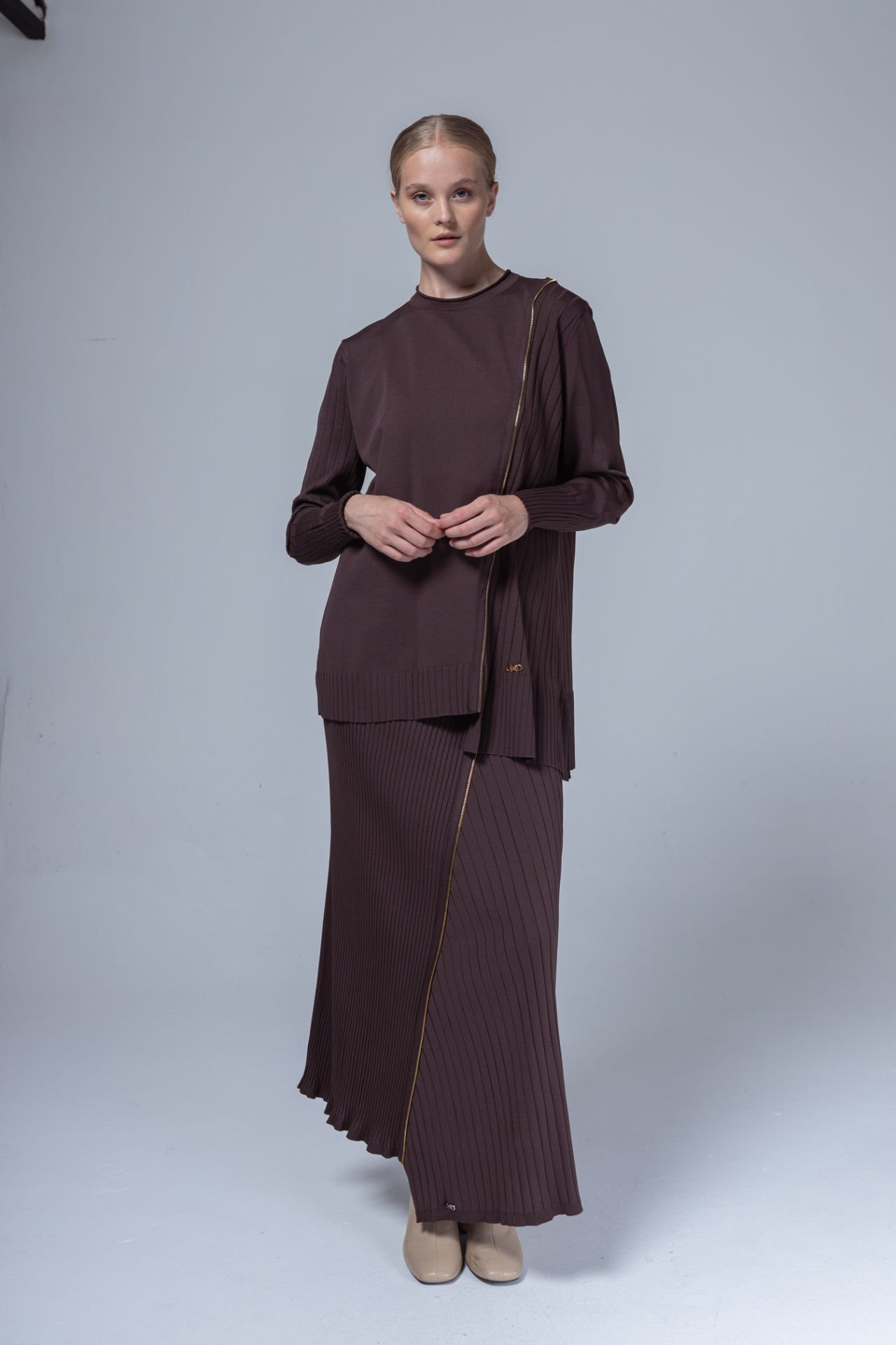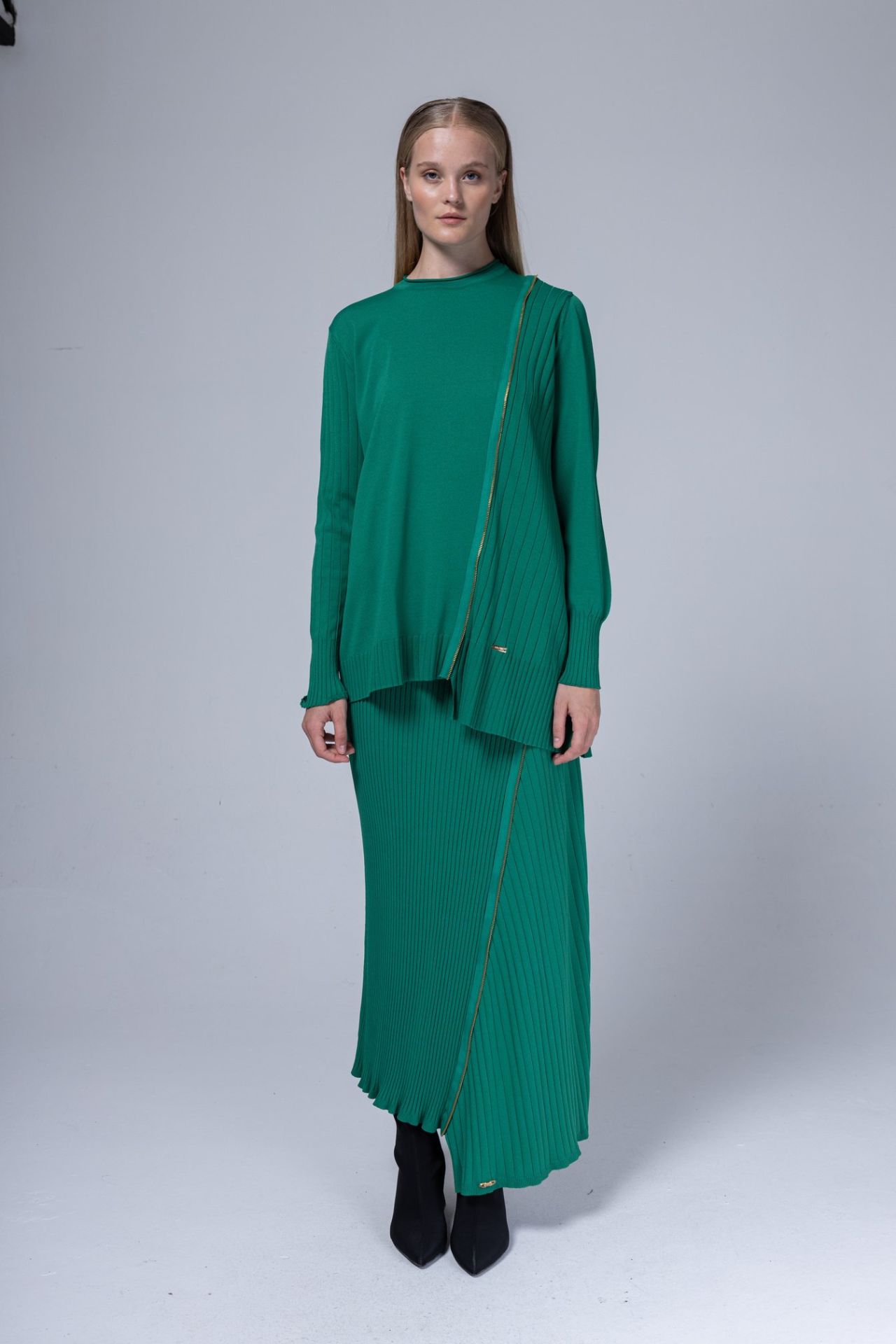 NİLİWİ FERMUARLI DETAYLI FİTİLLİ ASİMETRİK ETEKLİ TAKIM